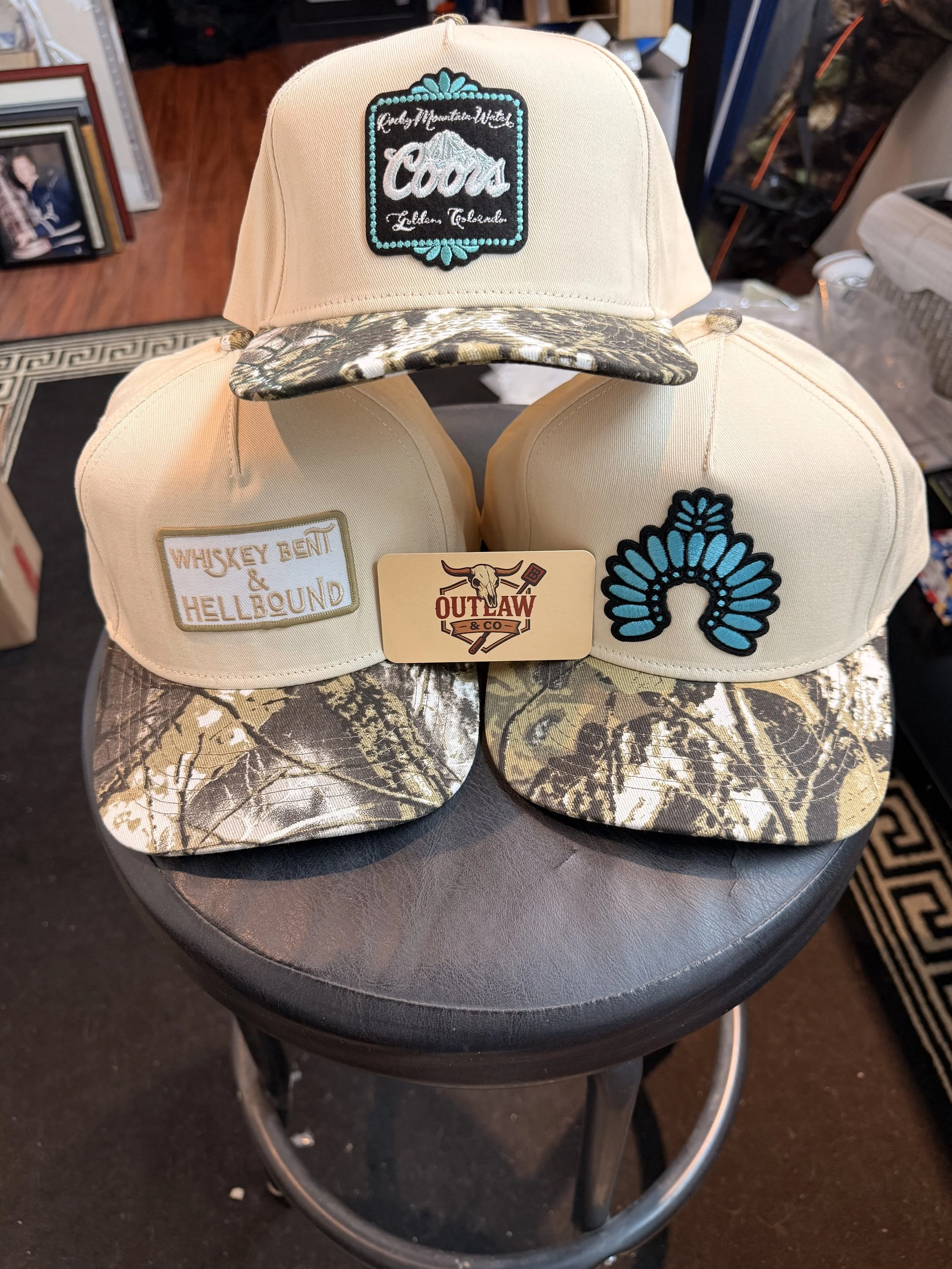 Categories: Select a Category Hoodies Outlaw Merch Crewnecks Graphic Tees Outlaw Christmas Hat's Snapbacks Toques Tops Graphic Tees Crewnecks Hoodies Jewelry Earrings Rings Accessories Claw Clips Purses/ Duffle Bags Wristlets Men's Hoodies Necklaces Graphic Tees Hoodies | Outlaw Merch | Outlaw Christmas | Hat's | Jewelry | Accessories | Quick View Stackin Quacks Tee $30.00 Add To Cart Added! Quick View Squash Blossom Camo Hat $45.00 Add To Cart Added! Quick View Whiskey bent and hell bound camo hat $45.00 Add To Cart Added! Quick View Coors Camo Hat $45.00 Add To Cart Added! Quick View Rack Em Up Camo hoodie $50.00 Add To Cart Added!